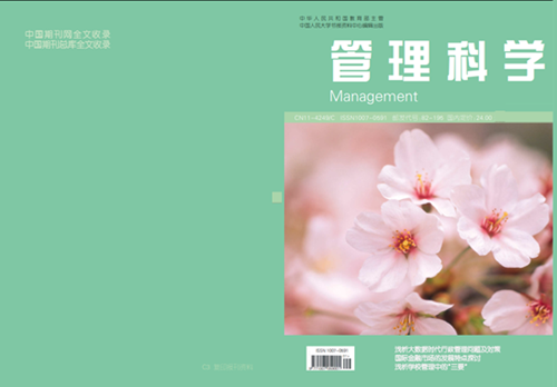 《管理科学》是经国家新闻出版广电总局批准备案的国家级管理科学综合类优秀专业学术理论期刊。主要栏目:行政管理、公共管理、文化管理、理论探讨、金融管理、经济管理、企业管理、教育管理、旅游管理等。本刊系中国学术期刊综合评价数据库、中国学术期刊(光盘版)、中国核心期刊(遴选)数据库等大型数据库收录期刊,万方数据库全文收录期刊。在本刊发表的论文可在职称评定、晋升考核以及岗位竞聘中起到重要科研认定作用。